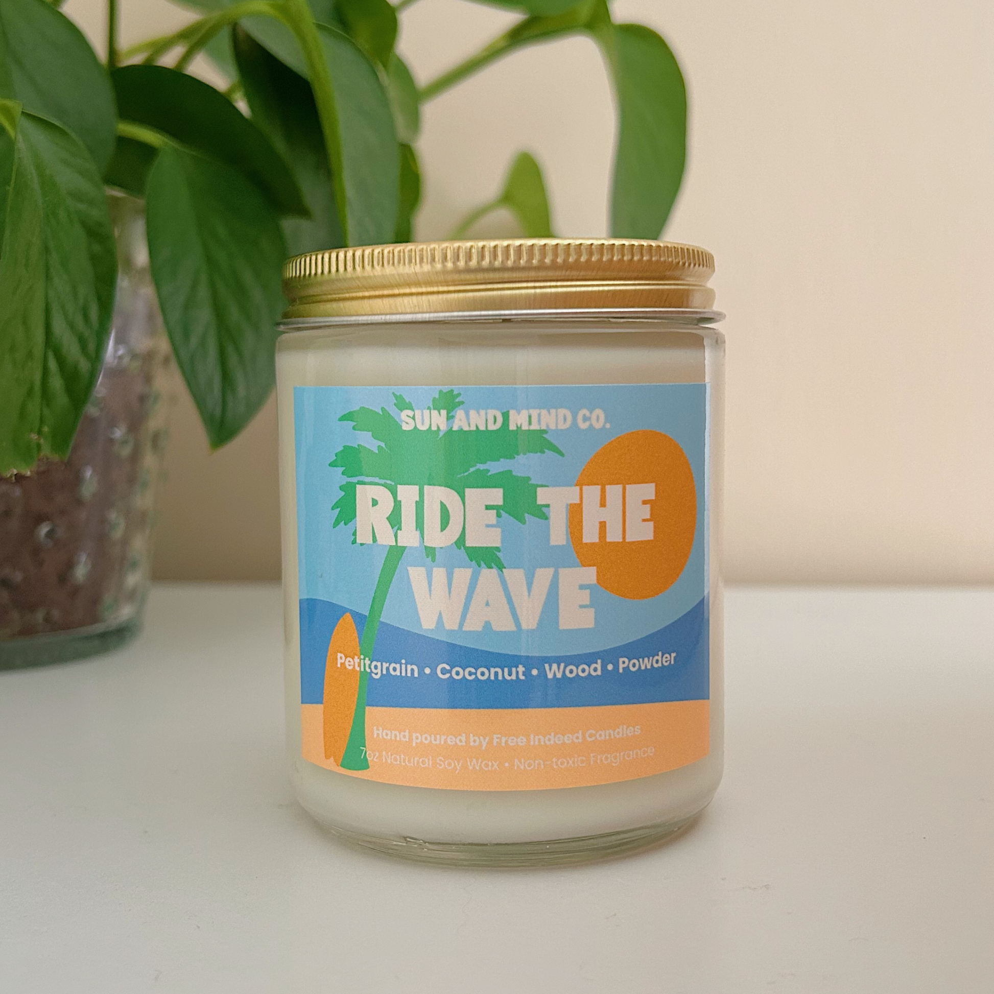 Bring the perfect beach day vibes to any space with our Ride The Wave non-toxic candle, made with 7 oz of natural soy wax! With fragrance notes of petitgrain, coconut, wood, and powder, you can relax and enjoy with non-headache-inducing ingredients!