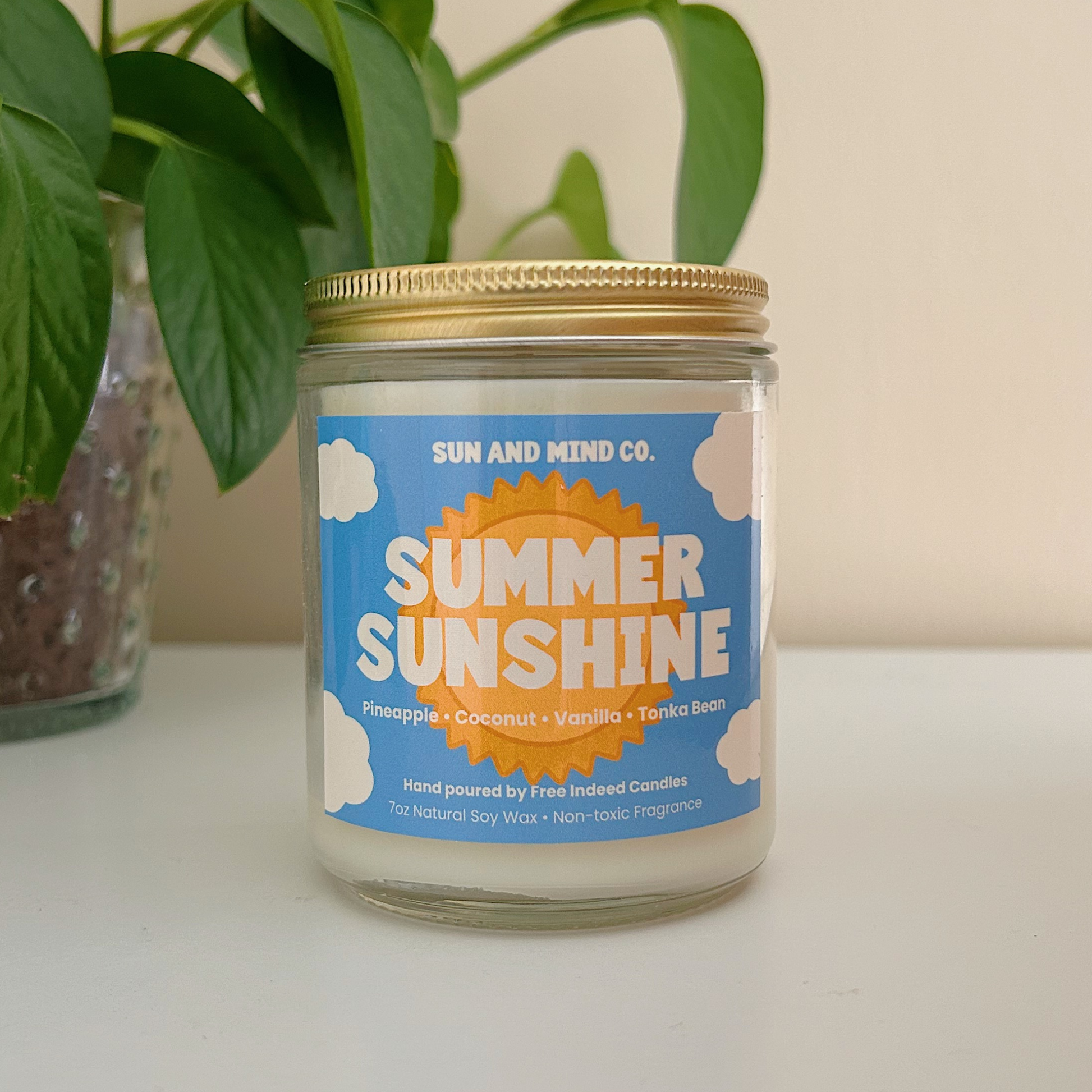 Enjoy a scent that feels like a beautiful sunny summer day with our Summer Sunshine non-toxic candle, made with 7 oz of natural soy wax! With fragrance notes of pineapple, coconut, vanilla, and tonka bean, you can relax and enjoy with non-headache-inducing ingredients!